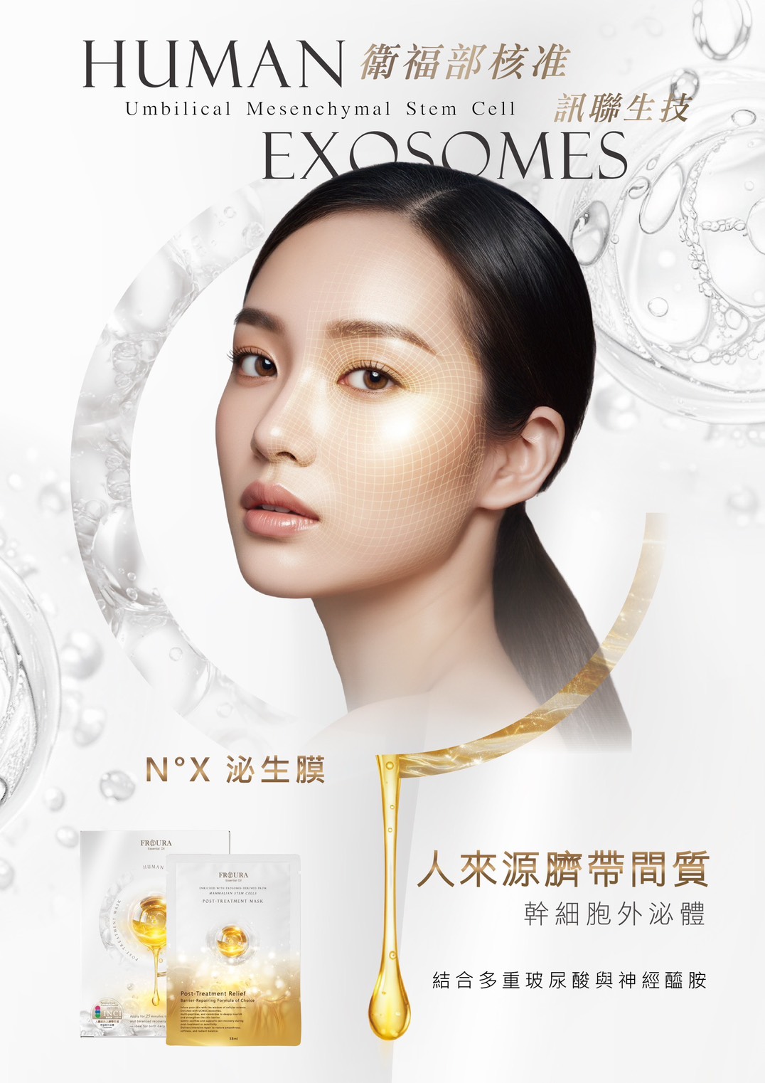 N°X外泌體修護面膜採用高濃度外泌體 × 多重胜肽修復科技,