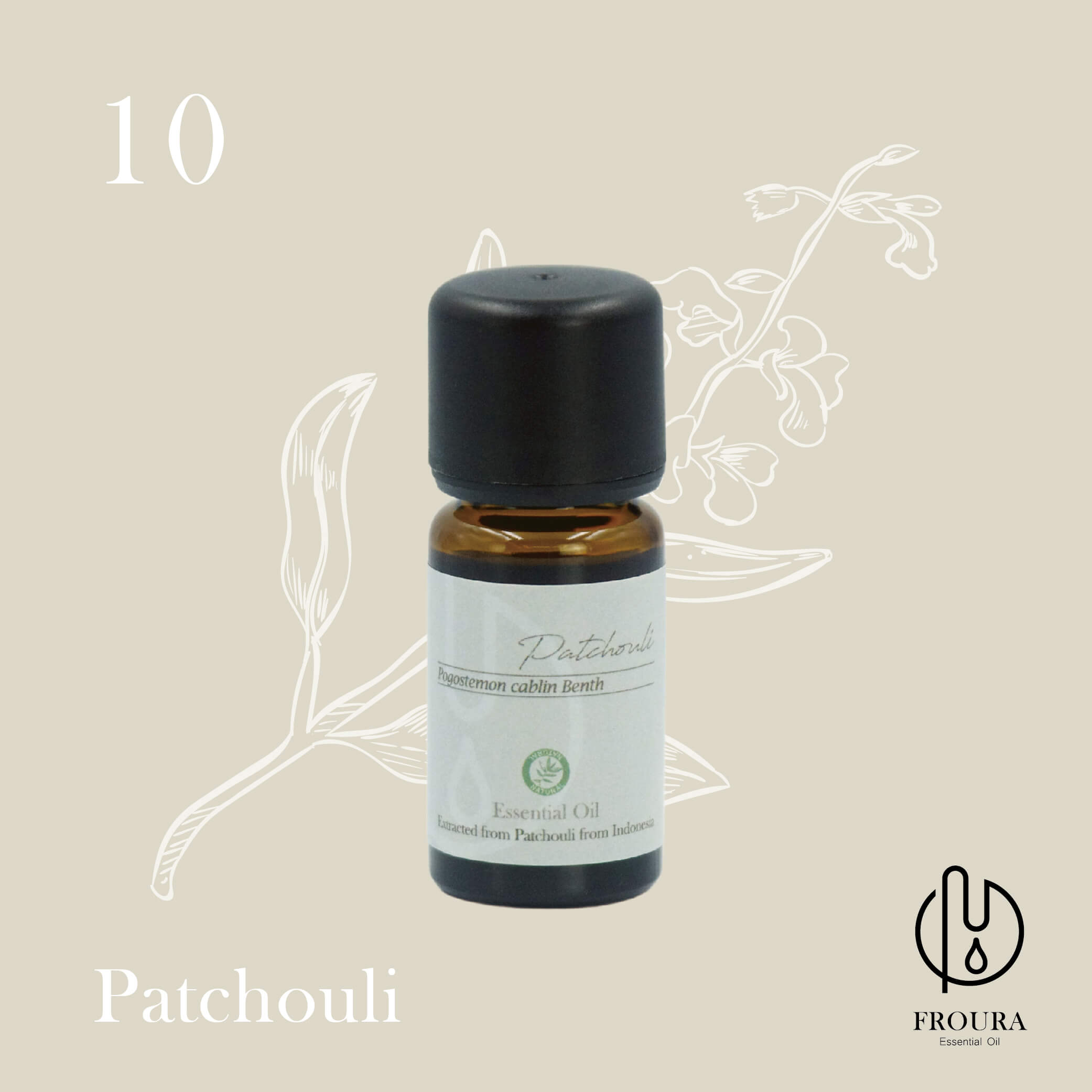 學名:Pogostemon cablin Benth 產地:印尼 萃取方式:蒸餾法 萃取部位:乾燥的葉子 科名:脣形科