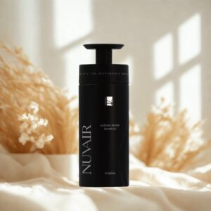 NUVAIR 靜林森語洗髮露,蘊含羽衣甘藍、藜麥蛋白、巴西莓果與有機雪絨花等天然萃取,能溫和清潔頭皮、舒緩壓力,為髮絲注入濕潤柔順感,洗後彷彿走入森林氣息中,帶來安定與清新平衡感。