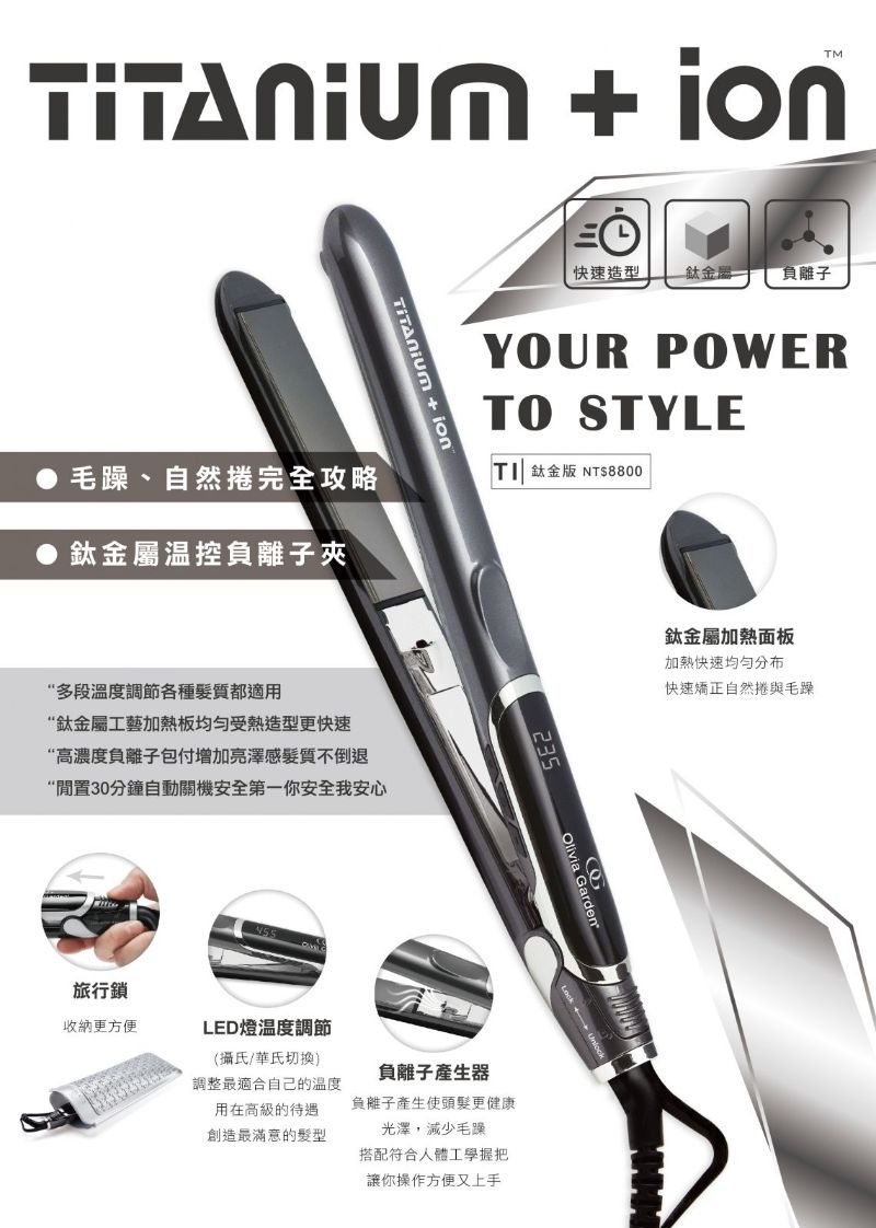 【Olivia Garden】奧莉維亞花園_鈦金屬溫控負離子夾